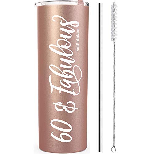 Price review 60 & Fabulous 20 Oz Stainless Steel Tumbler, 60th Birthday Gifts For Women, 60th Birthday Decorations for Women, 60th Party Supplies For Women Sixty Photo Shoot Prop Return Gift Her